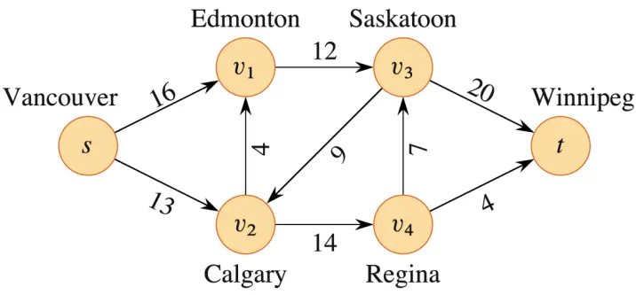 对于城市而言,它在设计输水管道路线的时候需要考虑的是:在不超过任何管道容量的前提下,最多能从水库送多少水到城市?