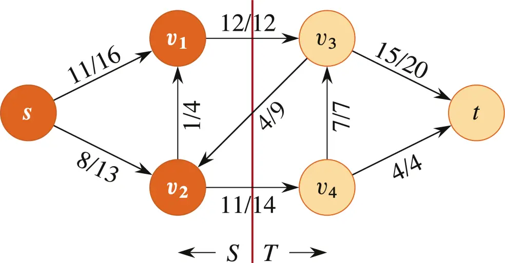 Ford-Fulkerson 算法结束时,意味着在残存网络 中,已经找不到从 到 的路了。