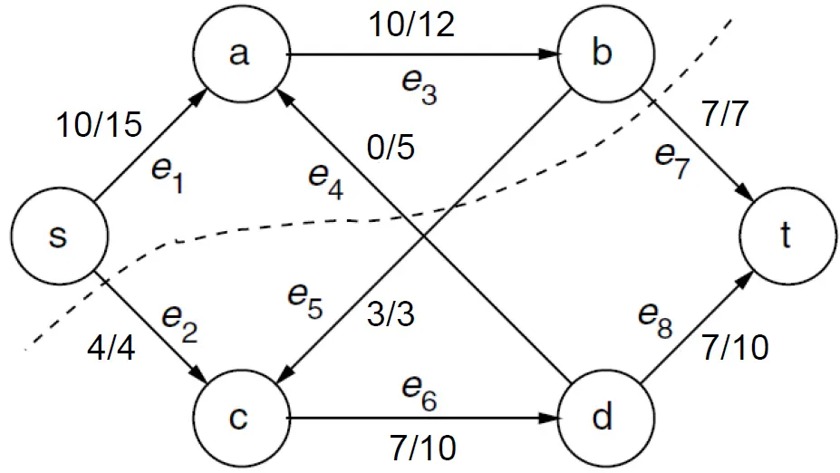 u ─────────────────▶ v 容量 c(u,v) = 10 当前流 f(u,v) = 7残存网络 中: