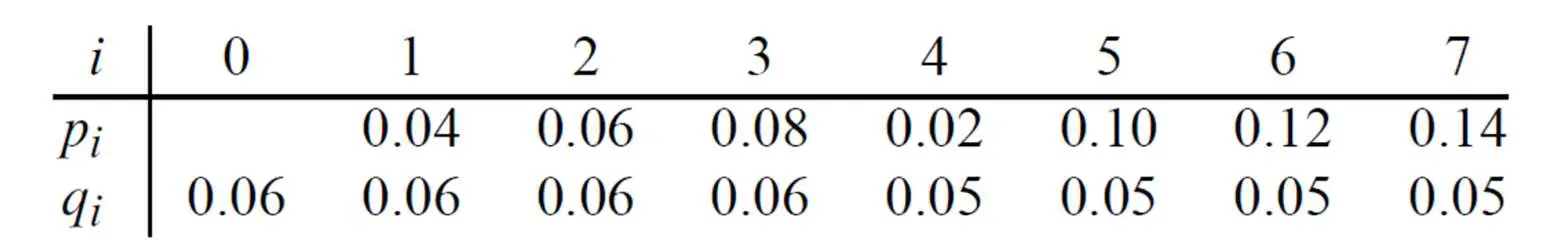 给定一个包含 n 个不同的键的集合 以及这些键对应的 成功查找概率 和 失败查找概率 。我们要构造一个 二叉搜索树 (BST),使得树的 加权查找成本最小。
