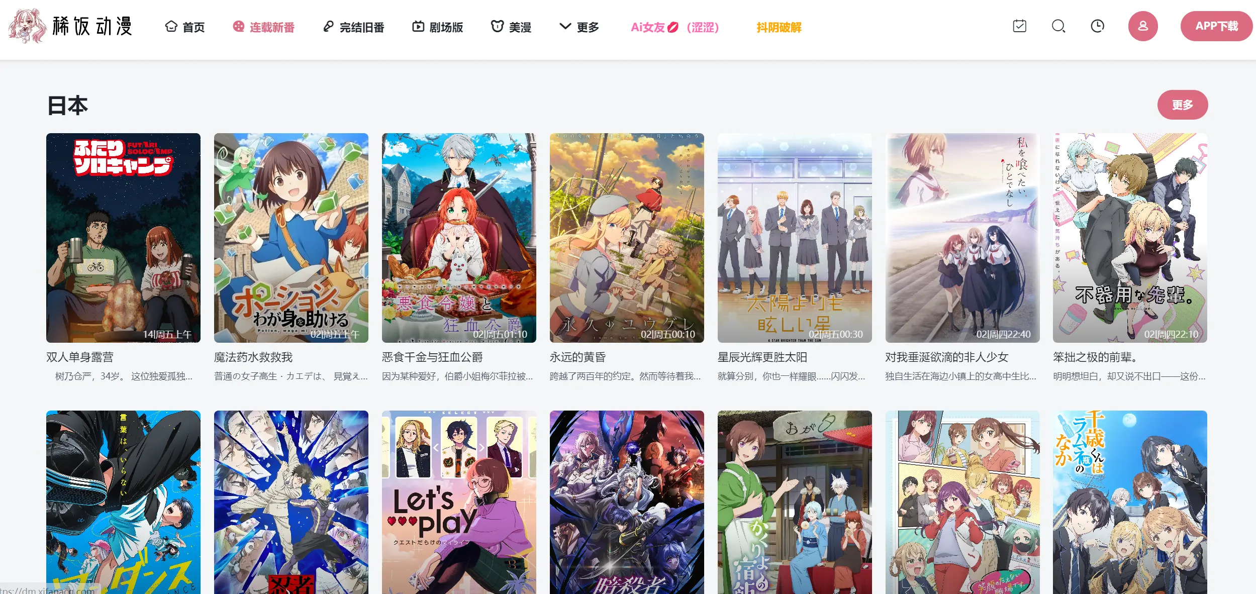 专注动漫的门户网站,拥有日漫、美漫,以及剧场版的分类,资源更新比较快,部分资源需要使用魔法。全站免注册在线观看,部分无广告。